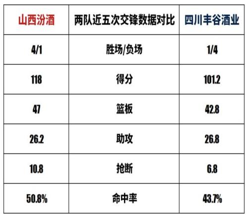 山西汾酒与四川丰谷酒业历史上一共交手31次,山西汾酒18胜13负。上赛季两队交手4次,山西汾酒3胜1负。
