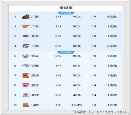 ②、北京队、上海队和青岛队都是8胜2负,稳居3-5位,以上5支球队也构成了今年的冠军争夺第一序列;