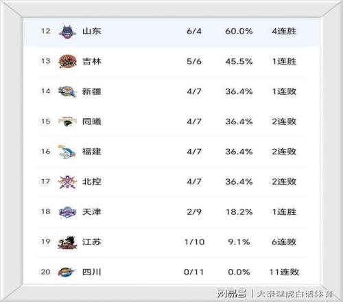 ③、昔日总冠军四川男篮0胜11负难尝一胜,继续排名垫底。