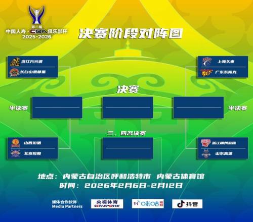 北京时间1月7日,CBA官方公布俱乐部杯决赛阶段赛程。