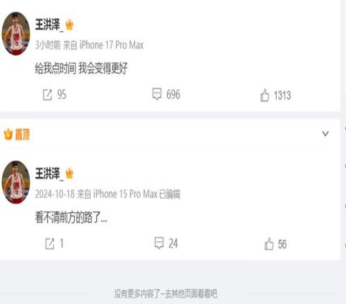 王洪泽现在的问题主要是在心理层面,和赛季初相比,现在的小王出手没有了自信,不敢投三分,内线对上比他高一点的老将就对抗不上,关于这个问题,王洪泽其实也意识到了,赛后他罕见的在个人社媒上发文勉励自己:给我点时间,我会变得更好(王洪泽一直很低调,很少发文,这是他个人职业生涯的第二条动态)。