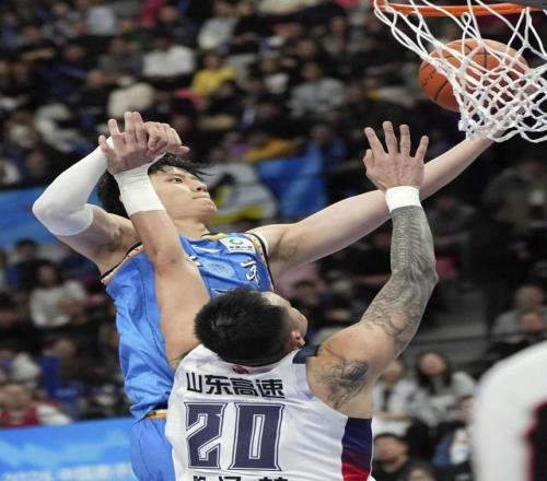 1月9日晚,北京北汽与山东男篮在比赛中拼抢。
