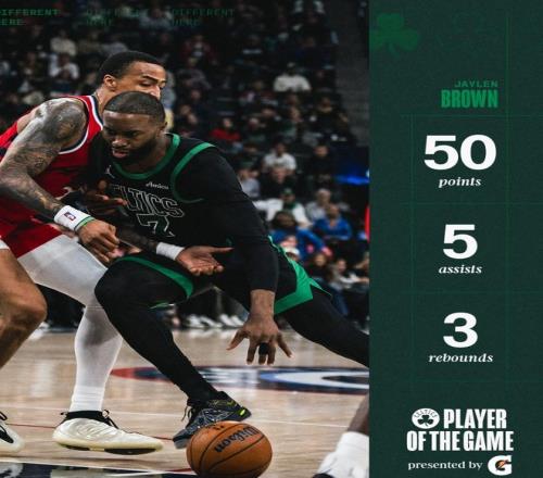 首节布朗就斩获13分,半场已经拿到20分,第三节更是爆炸单节8中7+三分4中3拿到19分2助攻,末节仅仅打了5分钟不到就拿到11分让比赛早早进入垃圾时间。