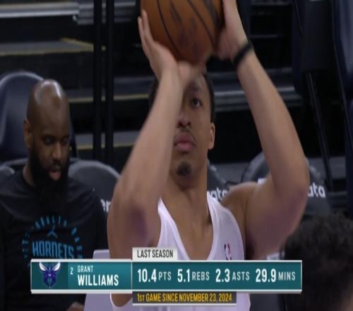 黄蜂VS爵士,转播方晒图,黄蜂球员格兰特-威廉姆斯今天复出上演赛季首秀。
