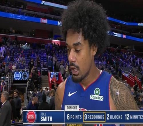 上半场,活塞双向合同球员托卢·史密斯表现出色,篮板已经刷新生涯新高(此前7个),替补出战12分钟,投篮4中1,罚球4中4,拿到6分9篮板(4前场篮板)2抢断2盖帽的数据。