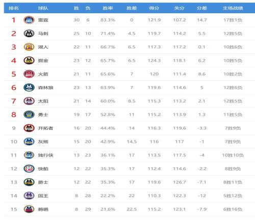 国王输球后8胜28负,继续排名西部第14。