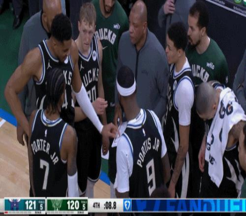 直到比赛进入到最后1分钟,凭借着罗林斯和库兹马的两记三分球,雄鹿才终于两次取得领先,当然了,紧接着他们就又被反超了。