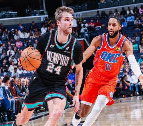中段多特和维金斯连续拿分,雷霆一路追到只差12分,灰熊依靠小贾伦和韦尔斯稳定节奏,三节打完,灰熊94-81雷霆。决战第四节,杰威开始发力单打,肯威也续上三分球,雷霆终于追到个位数分差,科沃德连续强攻止血,双方维持10分左右陷入胶着。最后5分钟,维金斯和米切尔带队一路追到只差6分,米切尔追身三分再中,肯威三分球反超!最后时刻,杰威对抗上篮不中,科沃德单打被卡鲁索大帽扇下,最终雷霆117-116击败灰熊,完成21分超级逆转!