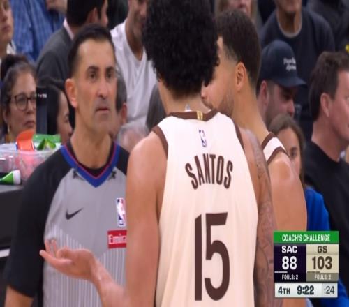 桑托斯篮板卡位时被吹犯规勇士挑战成功&威少犯规桑托斯被补吹T