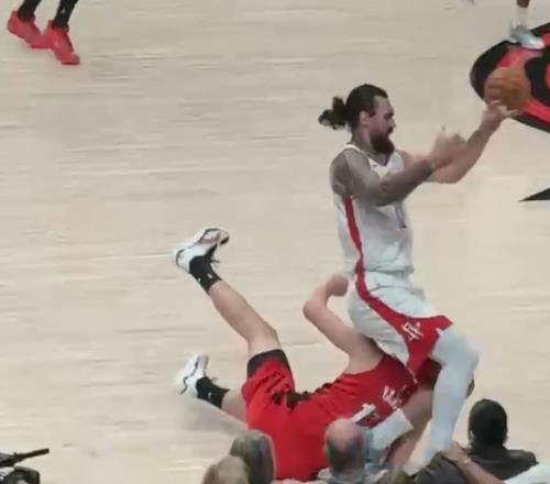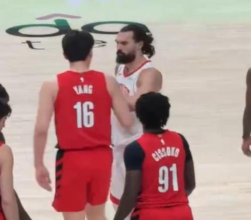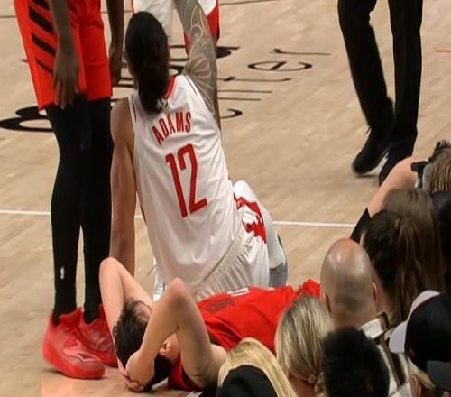 亚当斯摔倒后不慎撞到杨瀚森 后者脑袋重重砸在地上
