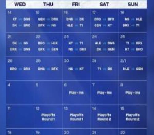 LCK杯赛程出炉:1月14日开打,焦点战16日HLEvsT1!