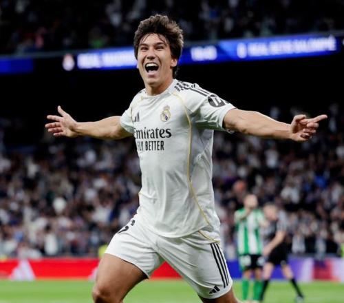西甲第18轮,皇马主场5-1击败贝蒂斯。21岁的贡萨洛-加西亚,成为最闪耀的球员:头球、左脚、右脚各入1球,上演完美帽子戏法!赛后,皇马主席弗洛伦蒂诺进场,给贡萨洛-加西亚送上祝贺。
