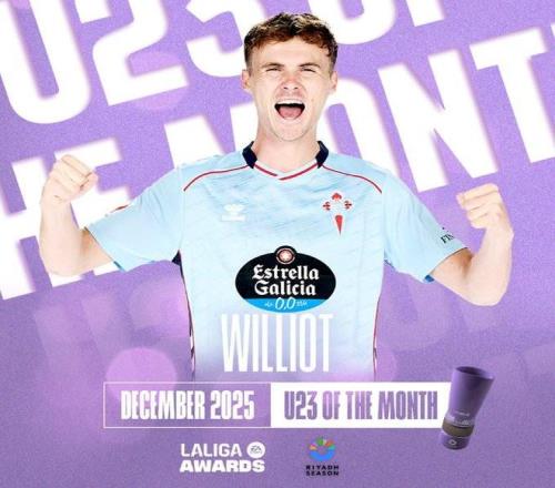 北京时间1月6日,西甲官方宣布,塞尔塔前锋斯韦德贝里当选联赛12月最佳U23球员。