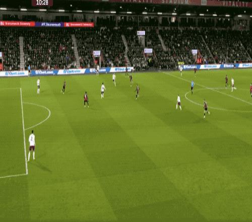 第76分钟,伯恩茅斯扳回一城,克鲁皮打出精彩世界波,皮球没有任何旋转,如炮弹一般钻进球门。