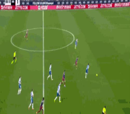 直到第86分钟,比赛的僵局才被打破。彼时,巴萨中路策动进攻,费尔明推进后横传,奥尔莫不停球直接起脚打门,足球直奔球门上角,西班牙人门将德米特洛维奇无能为力,巴塞罗那首开纪录。