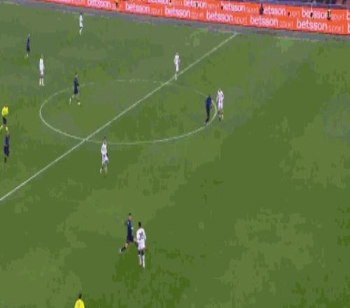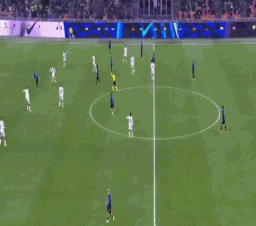 第19分钟,劳塔罗抢断后无私横传,黑格姆及时回防化解