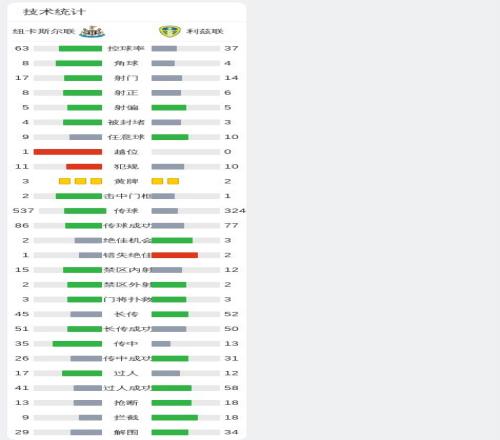 第45+5分钟,佳夫手球送点,勒温主罚点球命中,利兹联2-1纽卡