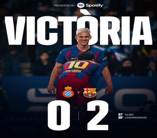 此役客场对阵西班牙人,巴萨凭借替补登场的奥尔莫和莱万各入一球,以2-0的比分击败对手。
