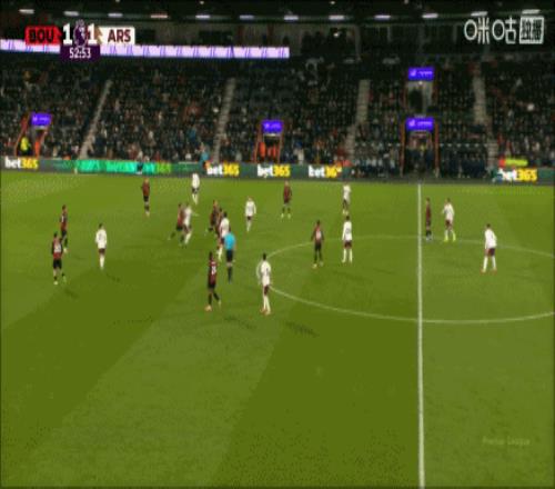 不过,第54分钟,阿森纳还是在对方多人密集防守的情况下,完成了打破1-1的进球。整体来看,伯恩茅斯的全部11人都在自己的半场回防,而最终在赖斯完成射门时,伯恩茅斯在禁区有多达8名队员,由此可见他们防守是有多么的密集。可哪怕是这样,阿森纳还是通过一次高空传递之后的禁区造险,由后插上的赖斯完成了推射。