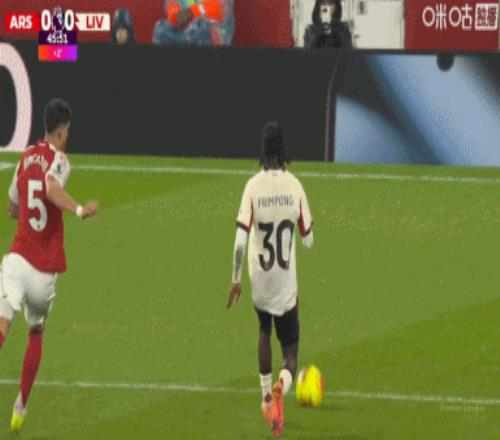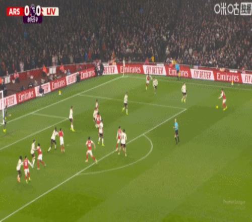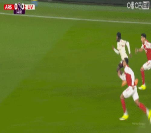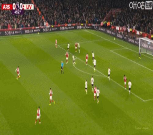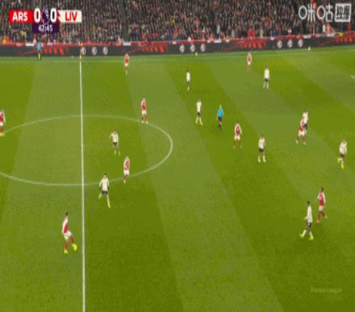 第43分钟,阿森纳默契配合,赖斯凌空打门被没收