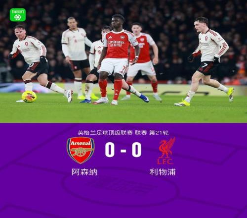 北京时间1月9日4:00,英超第21轮焦点战,阿森纳坐镇酋长球场迎战利物浦,本场主裁判为安东尼-泰勒。上半场,布拉德利吊射击中横梁。下半场,双方机会寥寥,布拉德利伤退,利物浦全场0射正。最终,阿森纳主场0-0闷平利物浦。