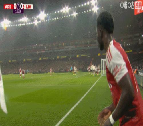 第44分钟,阿森纳前场围攻,萨卡禁区内打门被挡