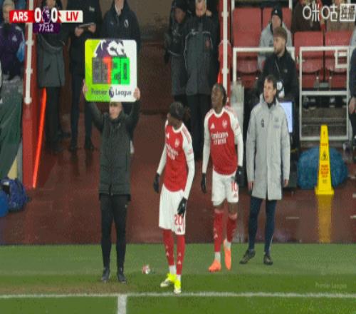 第77分钟,埃泽、马杜埃凯替补登场,厄德高、萨卡被换下